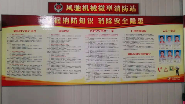 公司內部設立微型消防站,配備專職消防人員,配齊具備的消防器材,定期對消防專職人員進行消防安全知識、技能演練培訓,同時還配了小型消防車,確保萬無一失。